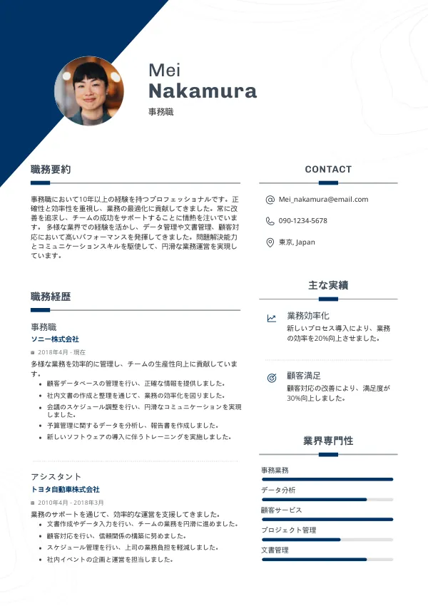 事務職は日本の職場で非常に需要の高い職種です。しかし、履歴書のミスが面接のチャンスを大幅に減少させることがあります。多くの求職者は、応募書類の重要性を軽視し、結果的に再度の拒否に直面します。履歴書を提出する前に、 mistakes.cv で見直しを行うことをお勧めします。