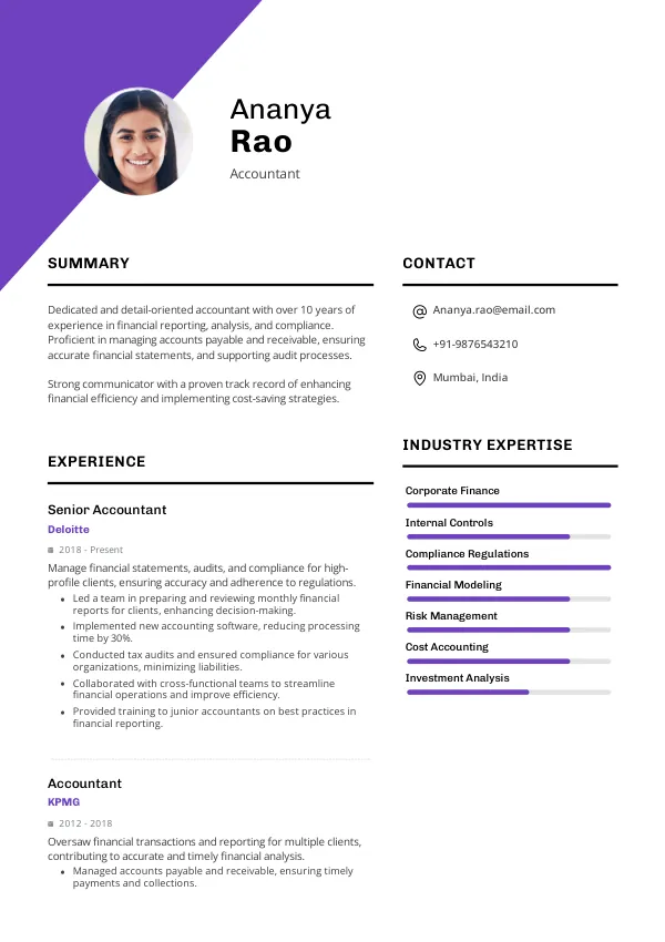 Senior or lead accountants must convey strategic impact and decision-making experience. Omitting this can lead recruiters to question your suitability for senior roles.