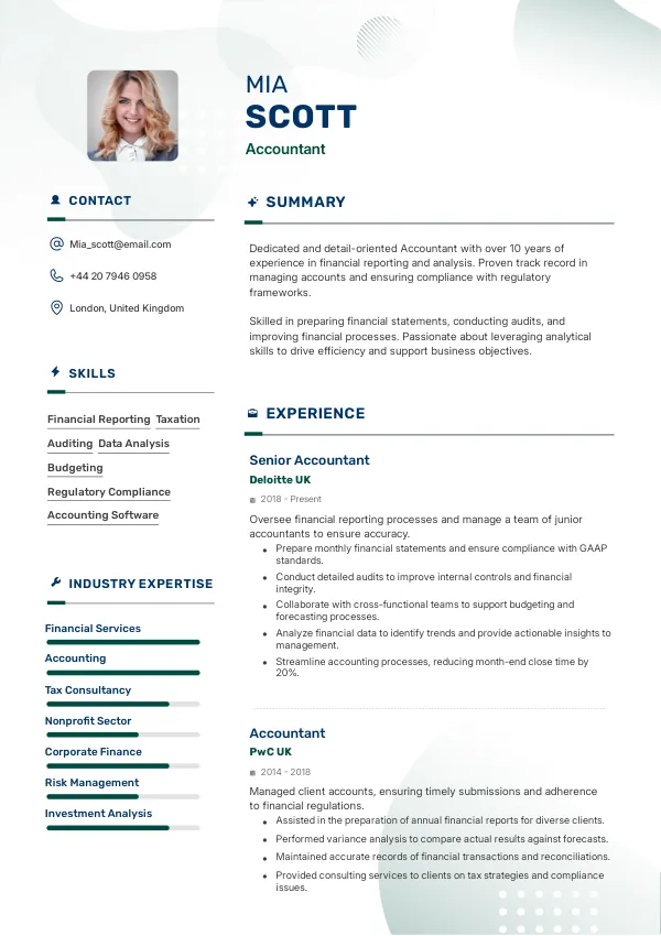 Mid-level accountants should emphasize their progression and achievements. Omitting quantifiable achievements can weaken your application. Tailor your CV to showcase leadership and project outcomes.