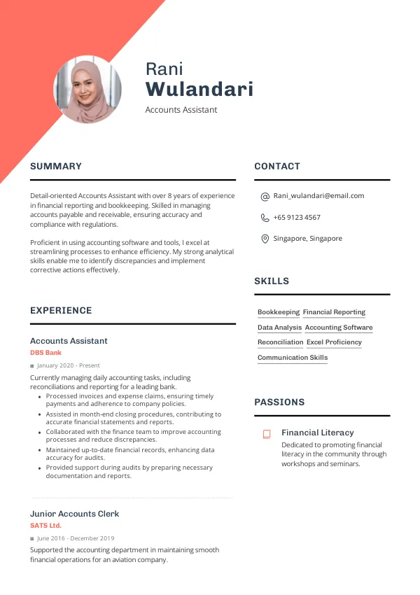 - Limit content to skills and experiences directly relevant to the Accounts Assistant role.