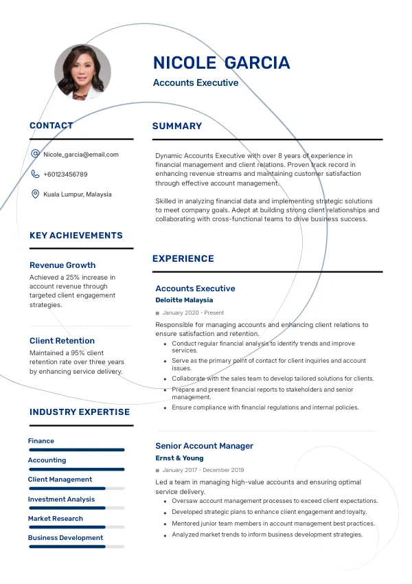 - Better: Including roles like 'Senior Accounts Executive' with a brief description of responsibilities.