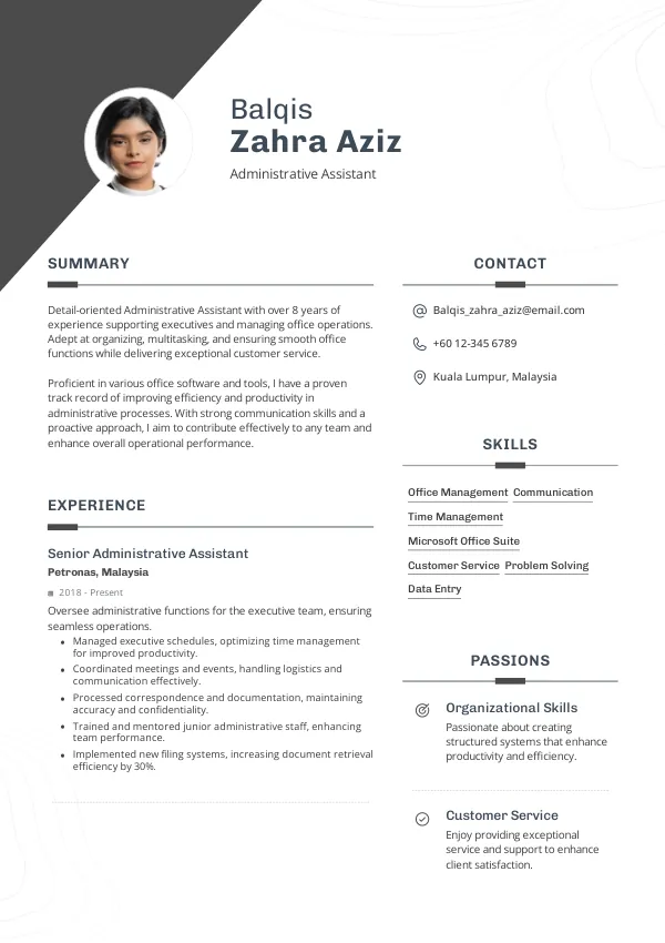 Recruiters and Applicant Tracking Systems (ATS) assess resumes based on specific criteria tailored to the Administrative Assistant role in Malaysia. Many candidates are filtered out for issues they may not even notice, such as formatting errors or keyword omissions. A professional review can help identify these hidden flaws and improve your chances of making it through the initial screening.