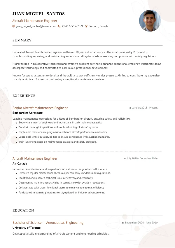 What should I include in my resume as an Aircraft Maintenance Engineer?