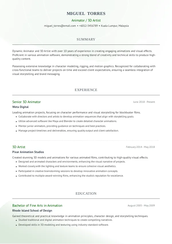 - Tailor your work experience to highlight only relevant positions that demonstrate your animation skills.