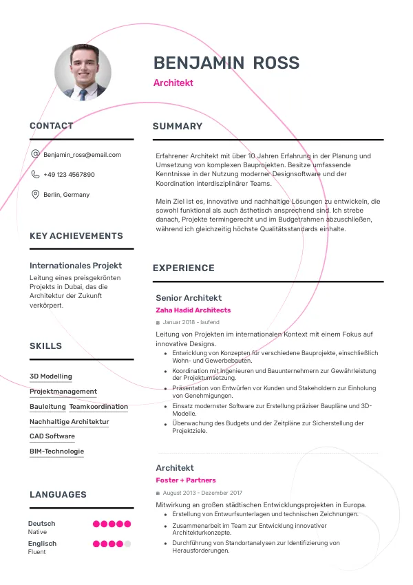 - Schlecht: „Architekturprojekte geleitet“ ohne Details.