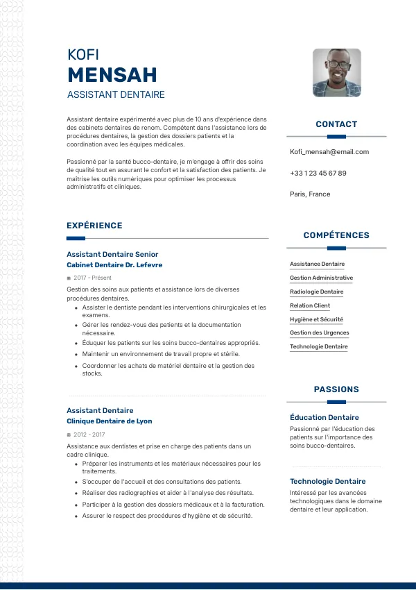 - Utilisez un modèle de CV professionnel et adapté au secteur dentaire.