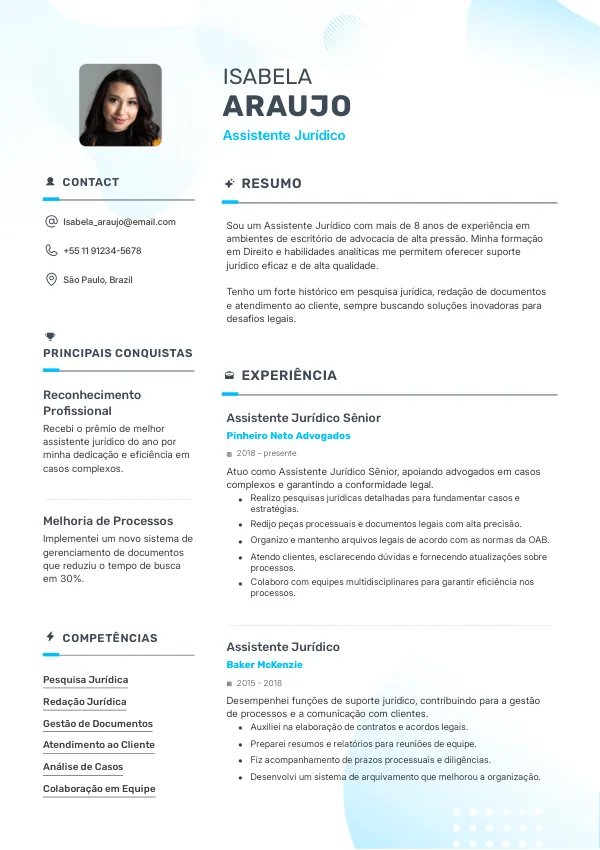 - Inclua habilidades específicas que são relevantes para a posição de Assistente Jurídico.