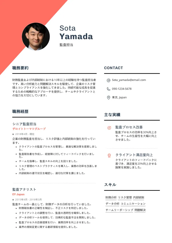 監査担当職は企業の財務の健全性を保つために不可欠な役割です。しかし、適切な履歴書がなければ、面接の機会を逃すことになります。履歴書のミスを見逃さないために、早めに見直しを行うことをお勧めします。