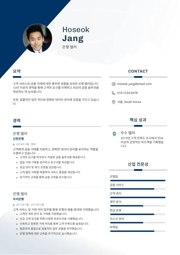 - 은행 텔러 직무와 관련된 경험만 포함하세요. 관련성을 강조하는 것이 중요합니다.