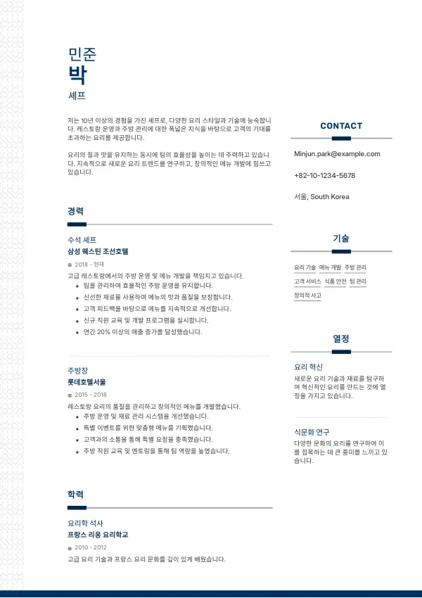 셰프 이력서는 얼마나 길어야 하나요?