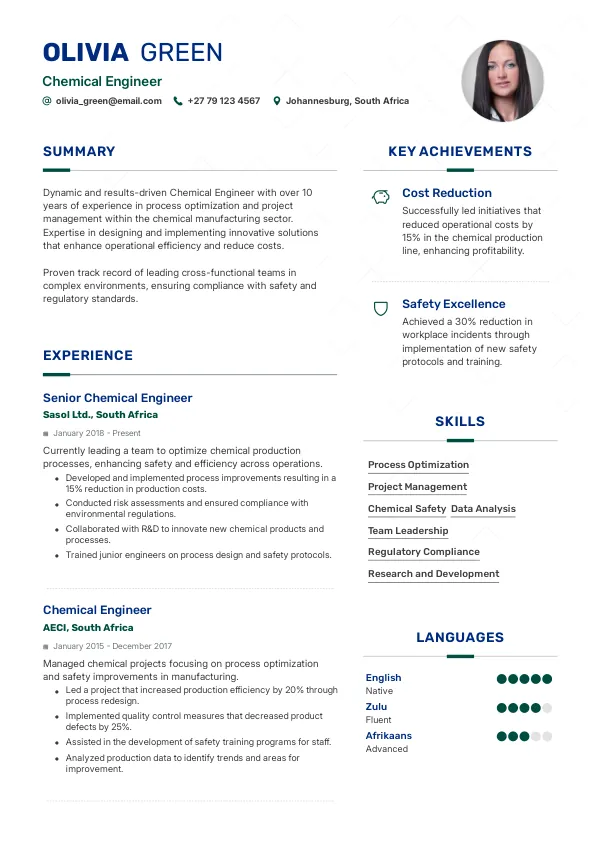 Introduction to Chemical Engineer Resumes in South Africa