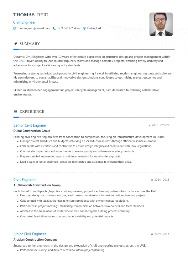 - Better: “Dedicated civil engineer with 5 years of experience in infrastructure projects in the UAE.”