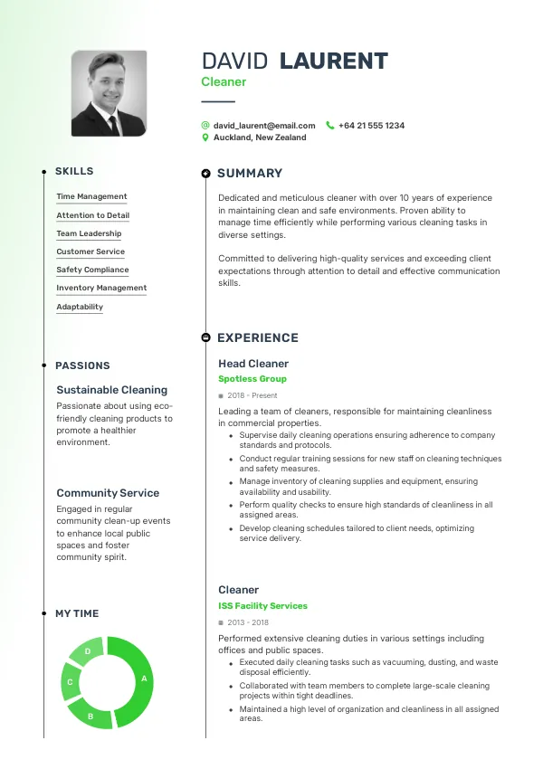 - Focus on recent and relevant experience that aligns with the cleaner role.