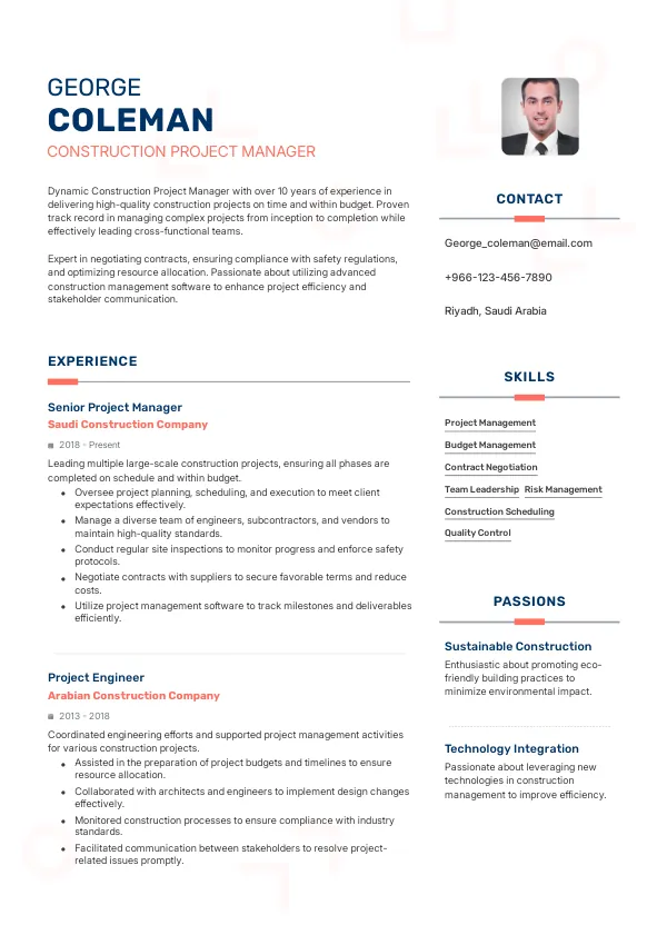 - Better: “Led multi-million SAR construction projects, ensuring on-time delivery and compliance with safety standards.”