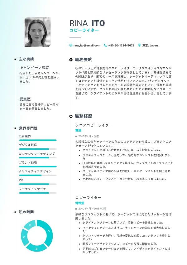 特にコピーライターの場合、クリエイティブさや言語能力が求められるため、履歴書の質が直接的な影響を与えます。