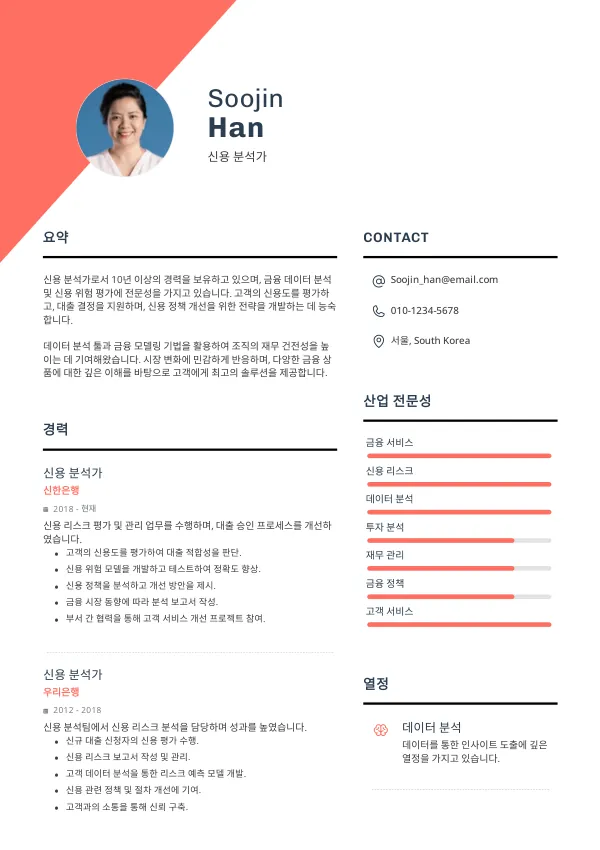 신용 분석가 이력서는 어떻게 작성하나요?