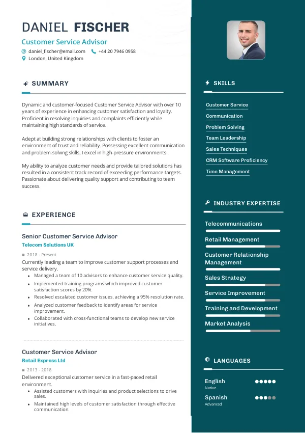 What should I include in my Customer Service Advisor CV?
