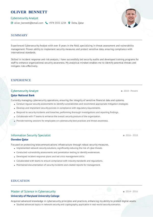 In Qatar, recruiters seek resumes that demonstrate relevant skills and experience in cybersecurity. They often use Applicant Tracking Systems (ATS) to filter candidates based on specific criteria. Unfortunately, many applicants are rejected for errors they might not even notice. A professional resume review could help identify these issues.