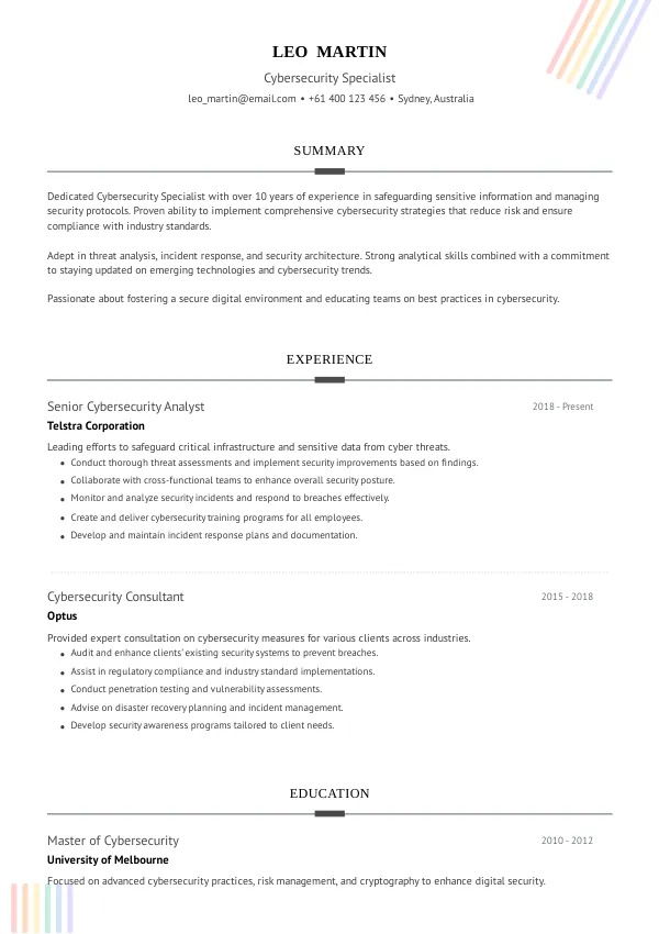 Don't let resume mistakes hinder your chances of landing a Cybersecurity role in Australia. Review your resume today and ensure it’s optimized for success. You can enhance your application by checking for errors at mistakes.cv or getting a professional second opinion.
