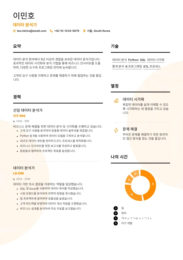 - 기본적인 텍스트 형식으로 이력서를 작성하세요.
