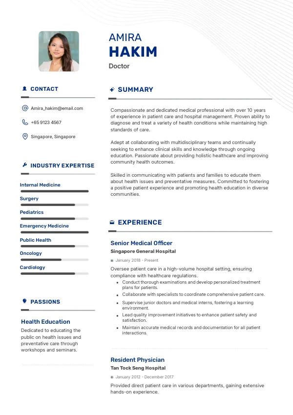 In Singapore, recruiters and hiring managers meticulously assess resumes for doctor positions. They look for relevant qualifications, experience, and specific skills that align with the job requirements. Many candidates are rejected due to minor errors they may not even notice. A professional review can help you identify these pitfalls and improve your chances of success.