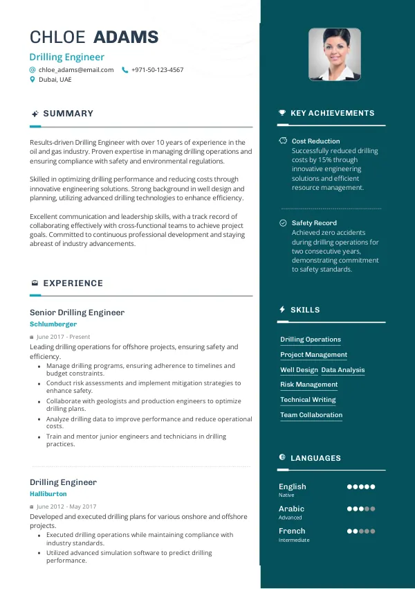 What should I include in my Drilling Engineer resume?