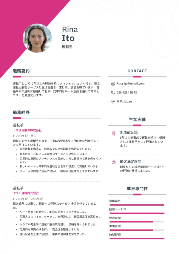 日本のリクルーターは、履歴書を通じて候補者の適性を判断します。特に運転手の職においては、職務経験や運転技術などが重視されます。ATS(Applicant Tracking System)も多くの企業で使用されており、適切なキーワードが含まれていない場合、瞬時に不合格となることがあります。