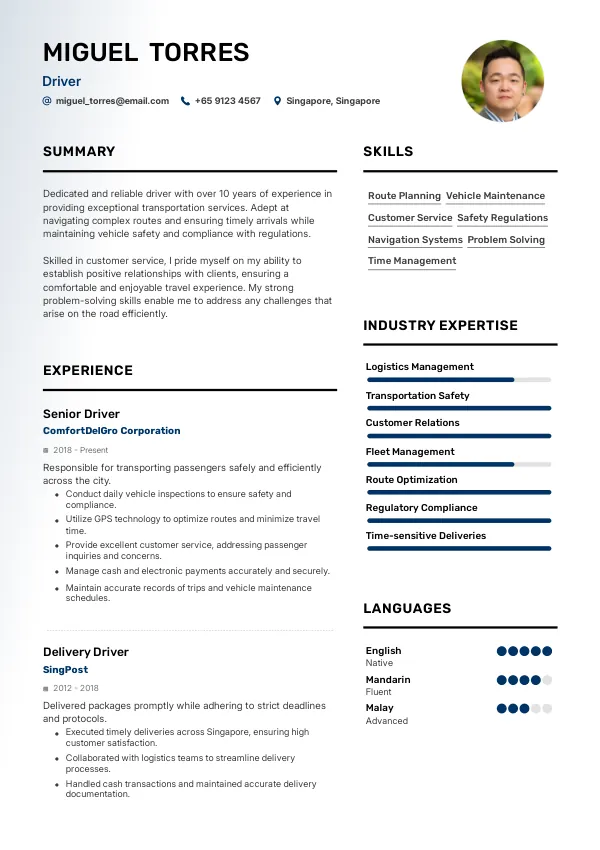 Senior drivers must demonstrate extensive experience and strategic thinking. Highlight any mentoring or training experiences that showcase your leadership qualities.