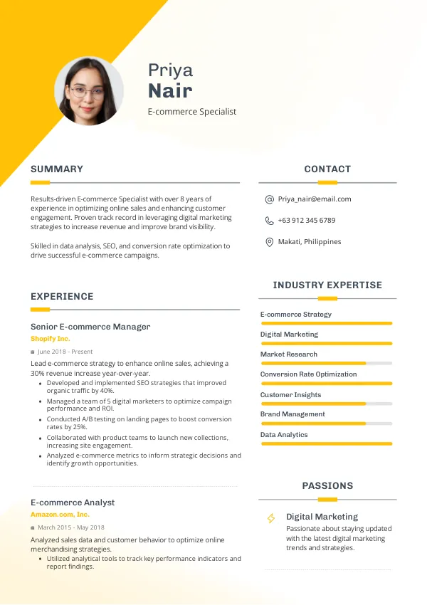 Focus on relevant skills, experiences, and achievements tailored to E-commerce roles.