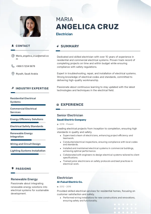 - Better: Focusing on skills and experiences relevant to the electrician role.