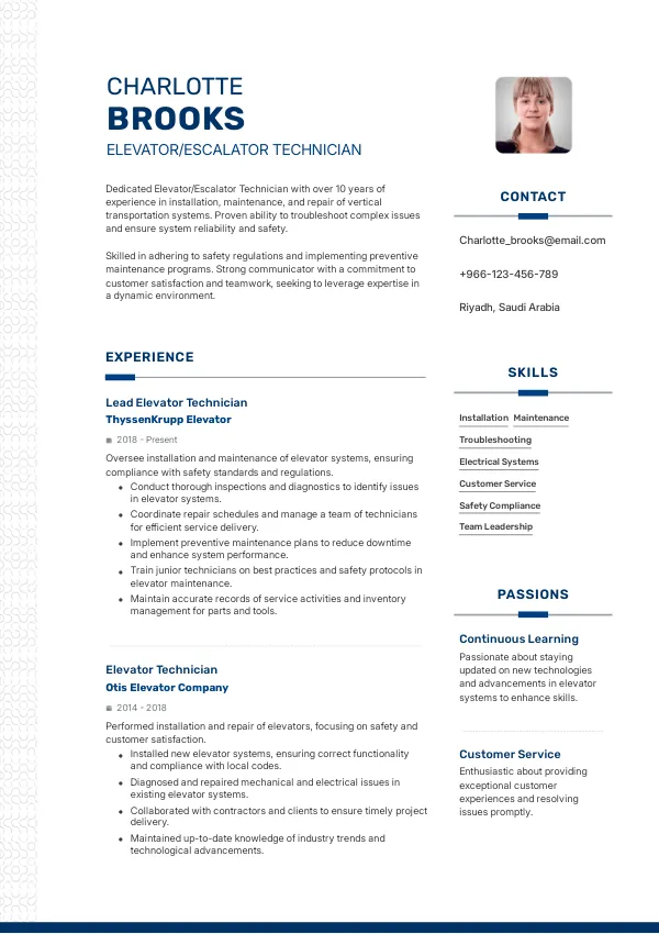 Don't let your resume mistakes hold you back from securing your desired position as an Elevator Technician. Review your resume today and consider using mistakes.cv for a professional evaluation to enhance your chances of landing interviews.