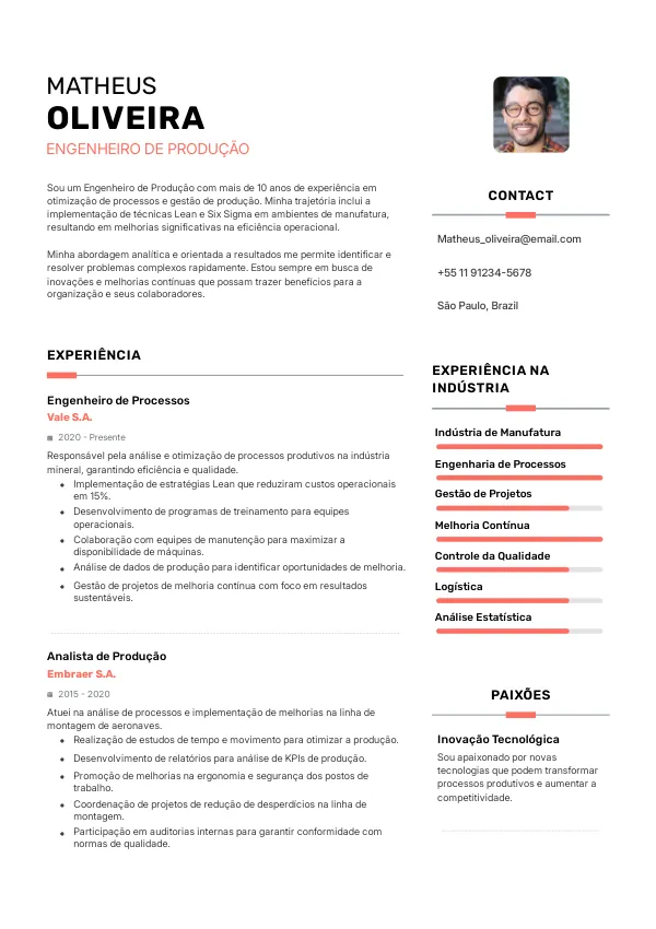 Incluir experiências que não se relacionam com a posição de Engenheiro de Produção pode distrair e desinteressar o recrutador.
