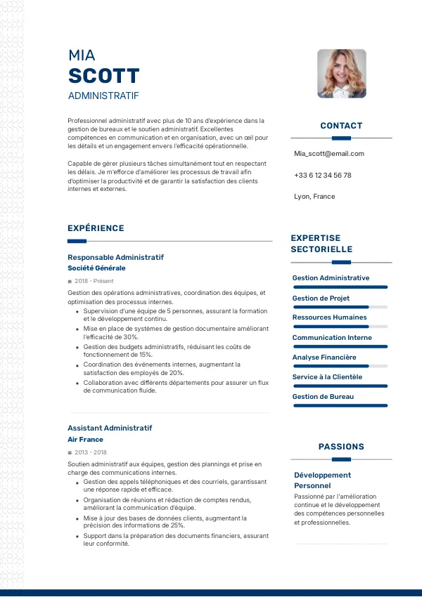 - Mauvais : Mentionner des hobbies qui n'ont aucun lien avec le travail administratif.
