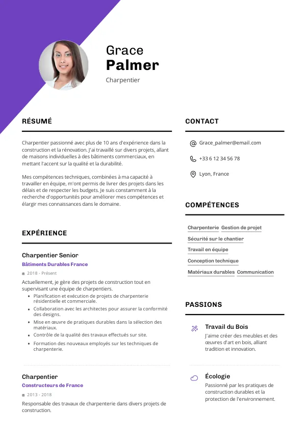 Pour un charpentier, un CV d'une page est souvent suffisant, surtout si vous avez moins de 10 ans d'expérience.