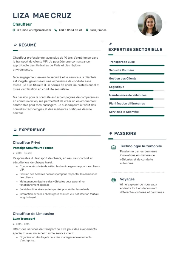 Un bon CV de chauffeur doit inclure des informations claires sur votre expérience, vos compétences en conduite et des références si possible.