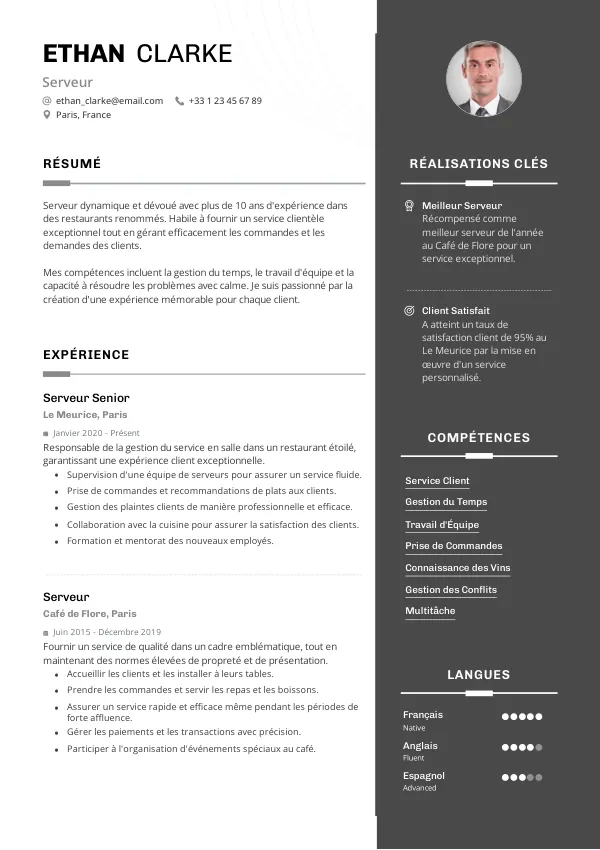 - Meilleur : "Serveur avec 5 ans d'expérience dans un restaurant gastronomique."