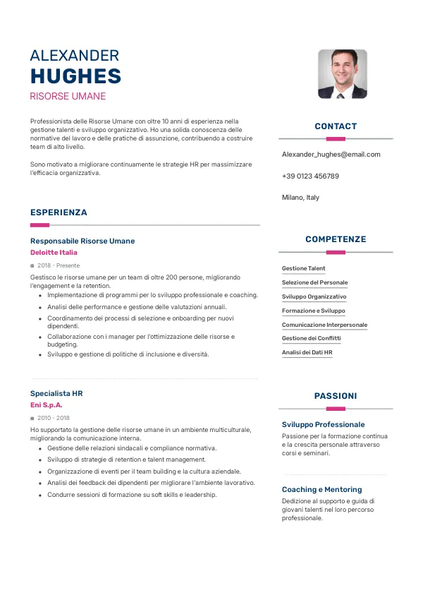 - Bad: Non menzionare "gestione delle risorse umane" o "reclutamento".