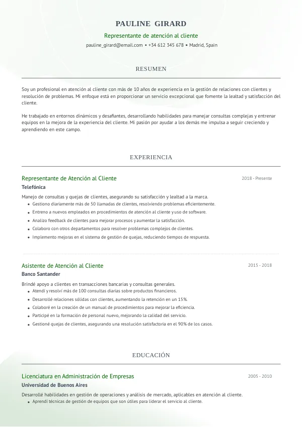 - Enfoca tu CV en las experiencias que demuestran tus habilidades para el rol de atención al cliente.