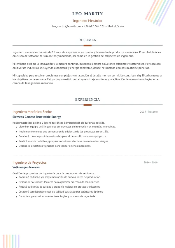 - Mejor: Enfocar en proyectos y roles relevantes a la ingeniería mecánica.