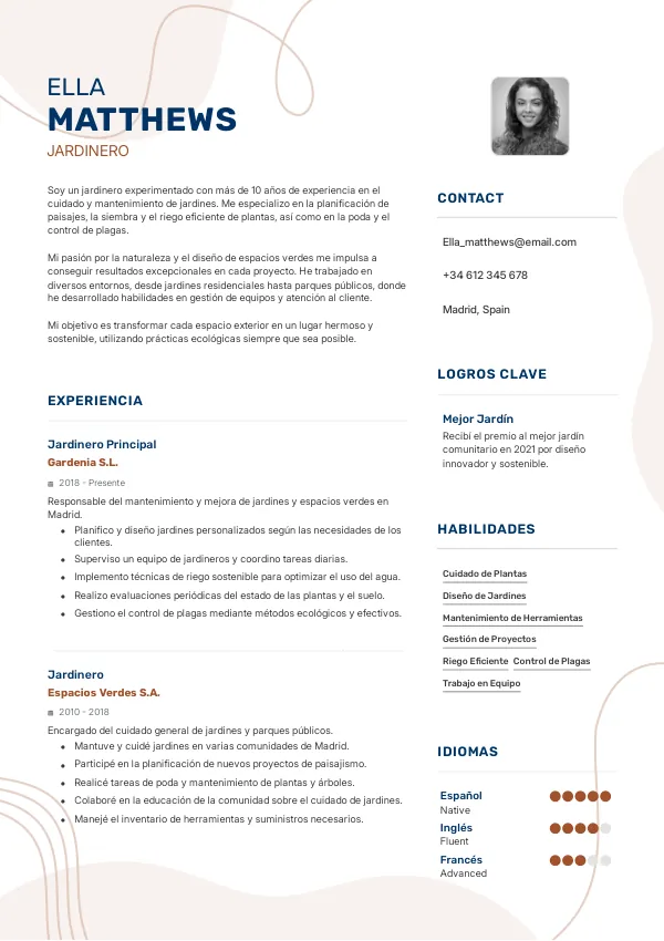 - Mejor: "Diseñé y mantuve jardines para 10 propiedades, aumentando la satisfacción del cliente en un 30%."