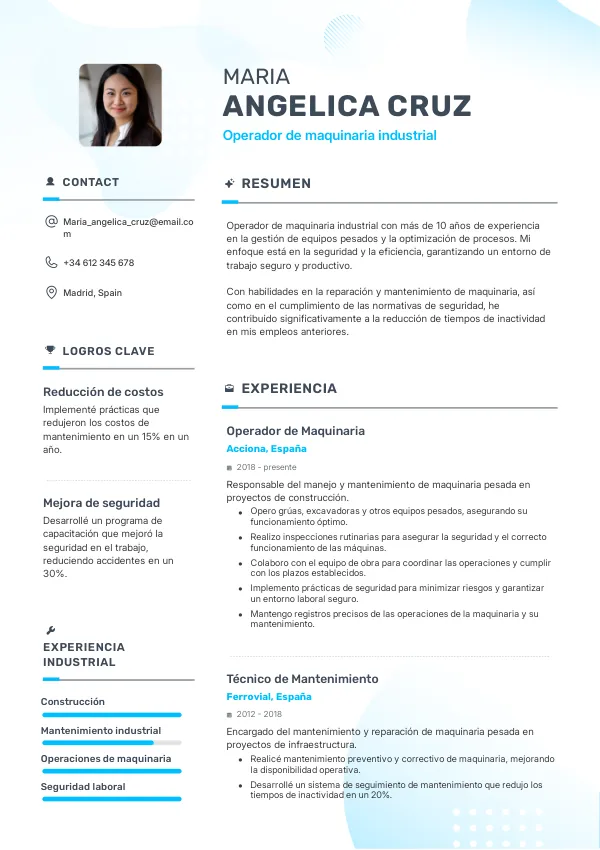 Errores en el CV de Operador de maquinaria industrial