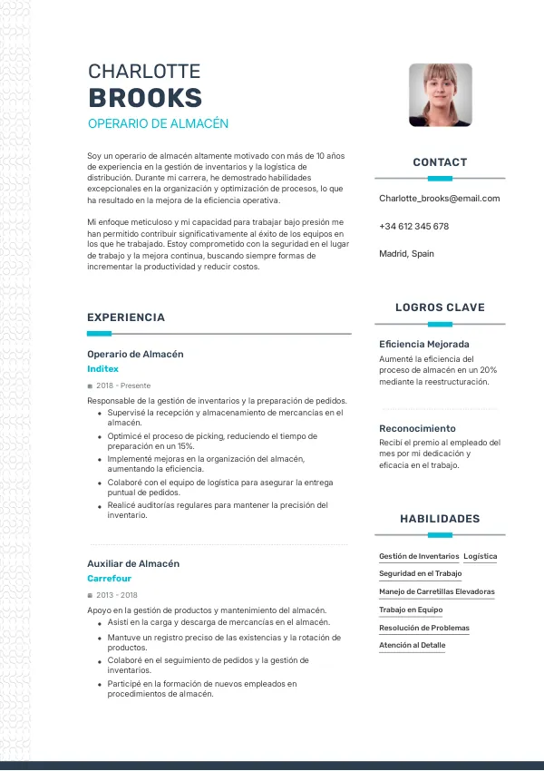 - Incluye cualquier formación o certificación que sea pertinente para el puesto de operario de almacén.