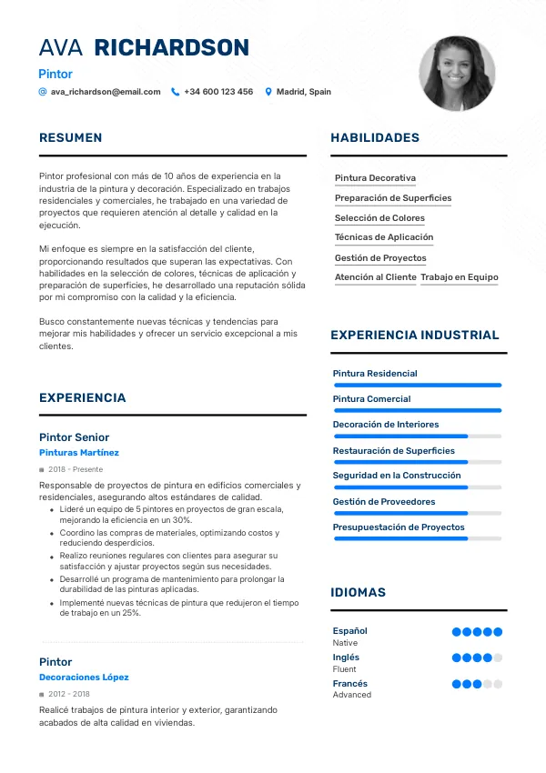 - Mejor: “Pintor con 5 años de experiencia en proyectos residenciales, especializado en acabados de alta calidad”.