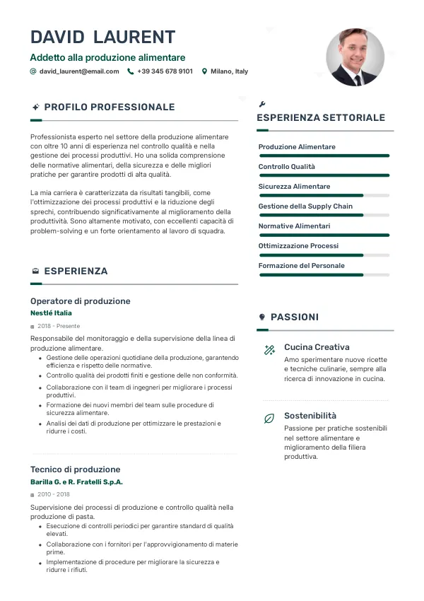 Quale formato di CV è migliore per l'addetto alla produzione alimentare?