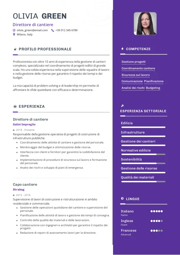 - Concentrati sulle esperienze più rilevanti per il ruolo di Direttore di cantiere.