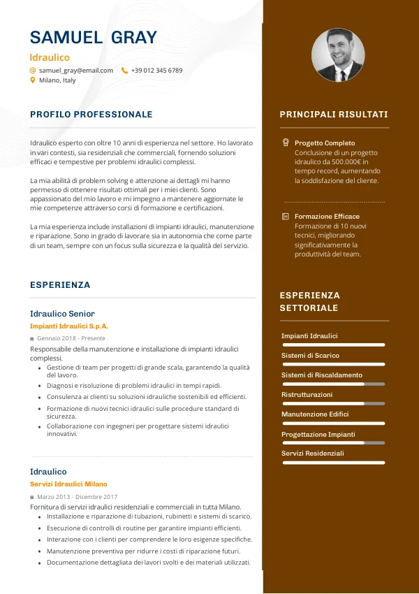 - Prioritizza le esperienze lavorative più attinenti al ruolo di idraulico.