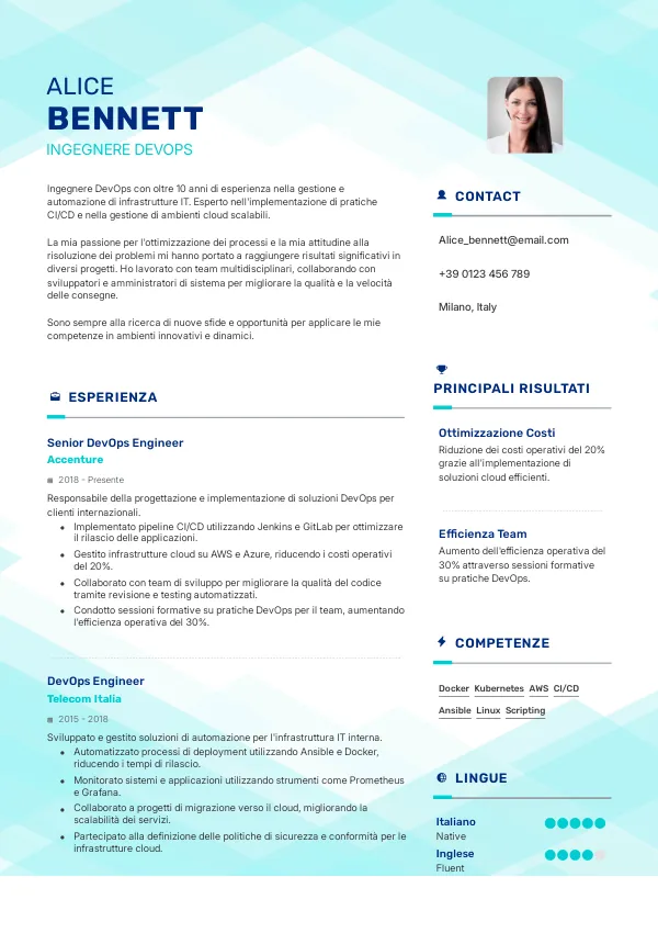 Dove posso trovare esempi di CV per Ingegneri DevOps?