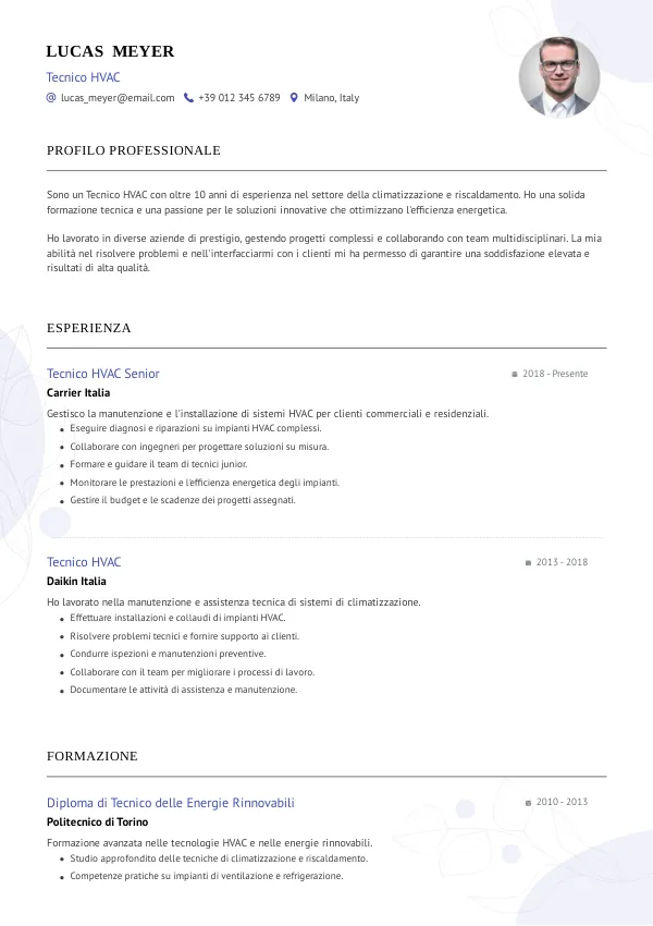 - Concentrati sulle esperienze più rilevanti per il ruolo di Tecnico HVAC.
