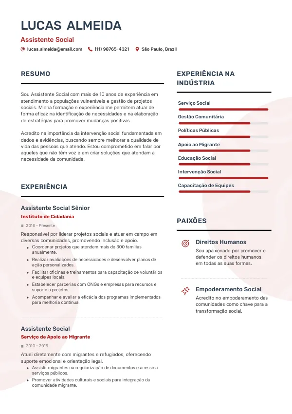 - Melhor: "Busco uma posição como Assistente Social para aplicar minhas habilidades em projetos comunitários."