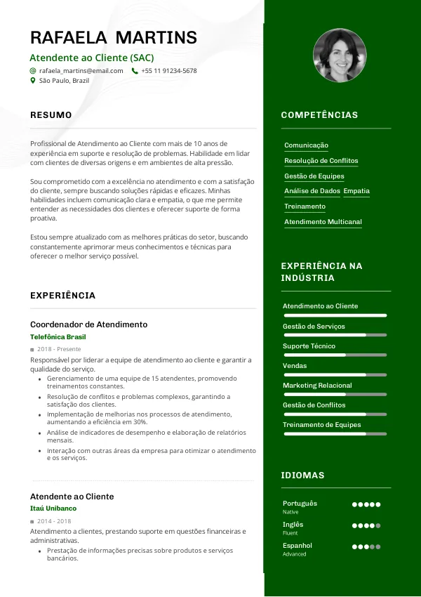 - Melhor: Destacar experiências diretamente relacionadas ao atendimento ao cliente, como estágios ou trabalhos anteriores na área.